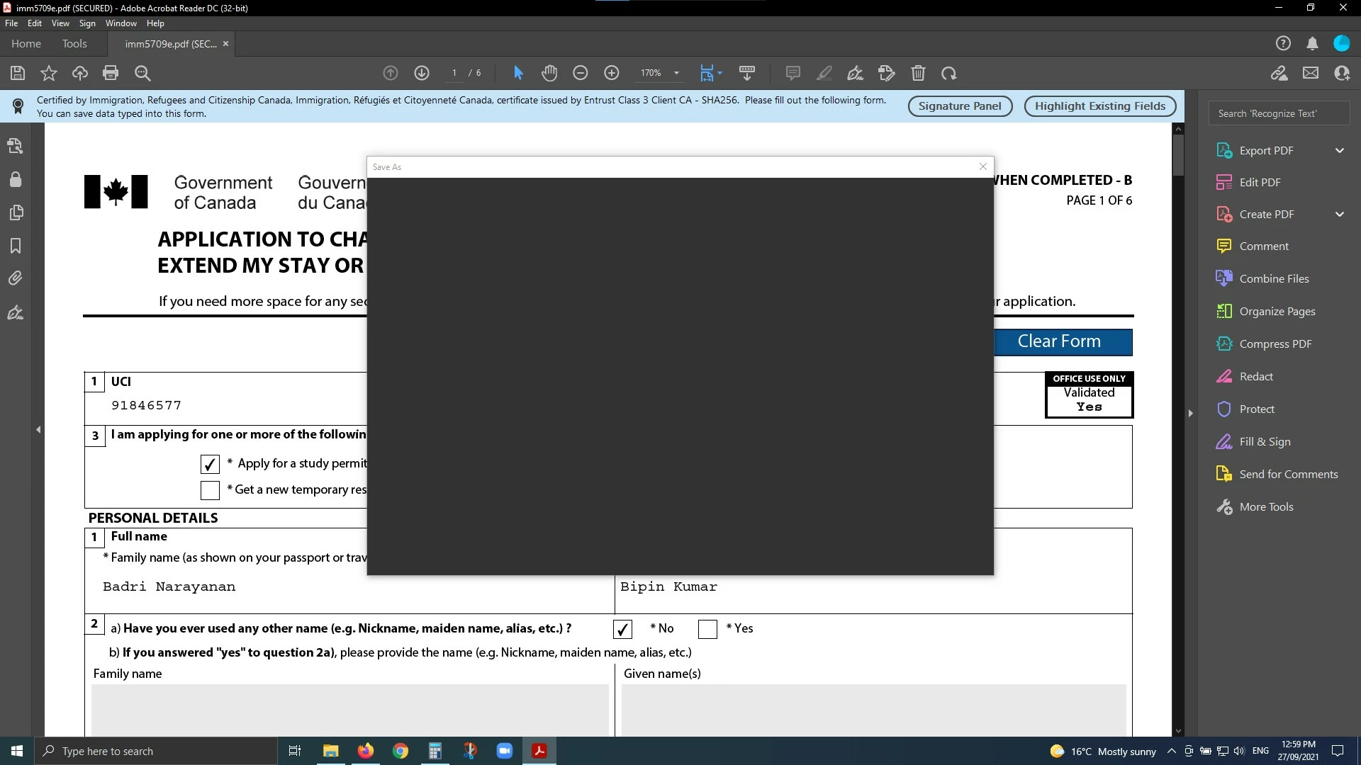I need to save the document to upload online. It's a secured document. This has been happening last couple of days after the last Windows update.
