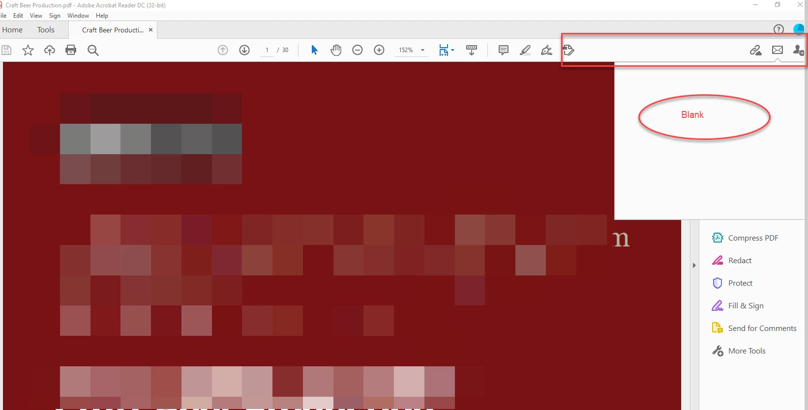 we currently face an issue, we host a customer that is using Acrobat Reader DC, when we try to send an attached email from the application it show a blank frame, not also, all the highlighted option too.