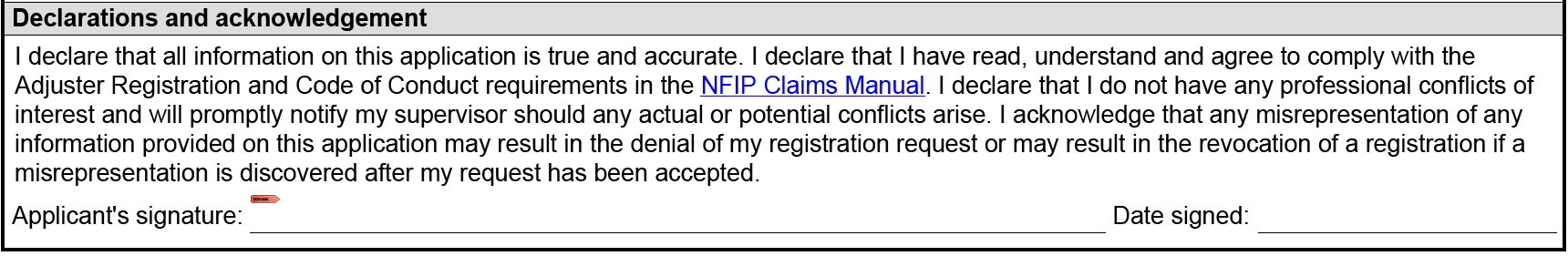 I'm helping a friend get through some FEMA paperwork for his insurance adjustment job and we're running into an issue signing a form from FEMA. If you look at the FEMA link below, it will let you download a PDF and at the bottom, there is a signature block. The problem is we have tried every way we can think of to sign it to no avail. I even tried to sign it with my military ID to see if it would require something like this and nothing. We messed with the signature tools and lots of other stuff. Nothing. Any help y'all can provide would be greatly appreciated.