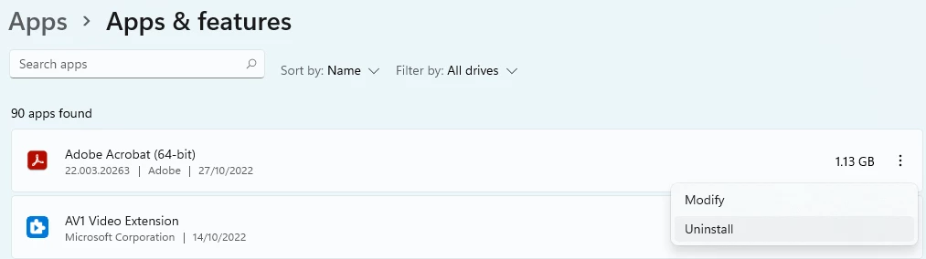 I want to uninstall Adobe Acrobat as the current installation is unable to print. I kept getting error 'FullTrustNotifier.exe' is not marked for installation. Please help.