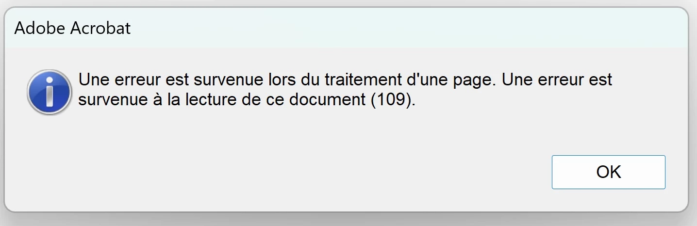 Dans un document pdf de 300 pages, j'ai le message d'erreur suivant: