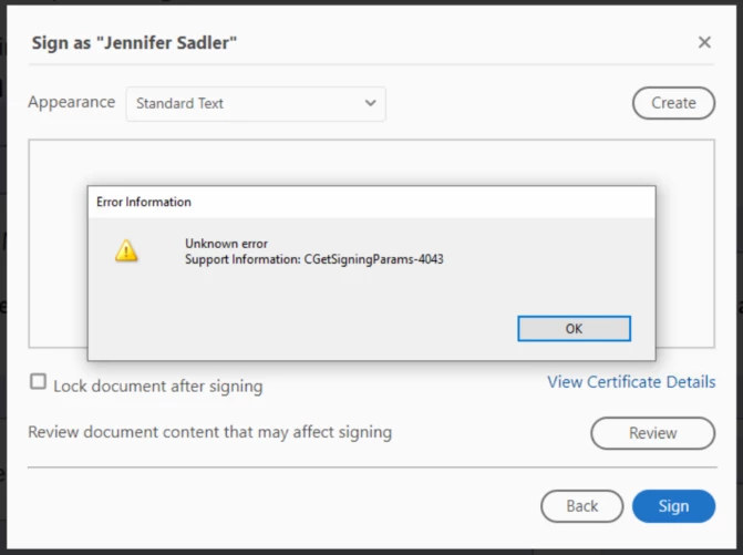 Can anyone point me to some documentation that defines what CGetSigningParams-4043 is and how to resolve it?