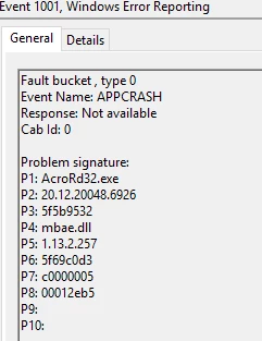 Upgrade AcroRd32.exe, version: 20.12.20048.6926 Constant Crashing