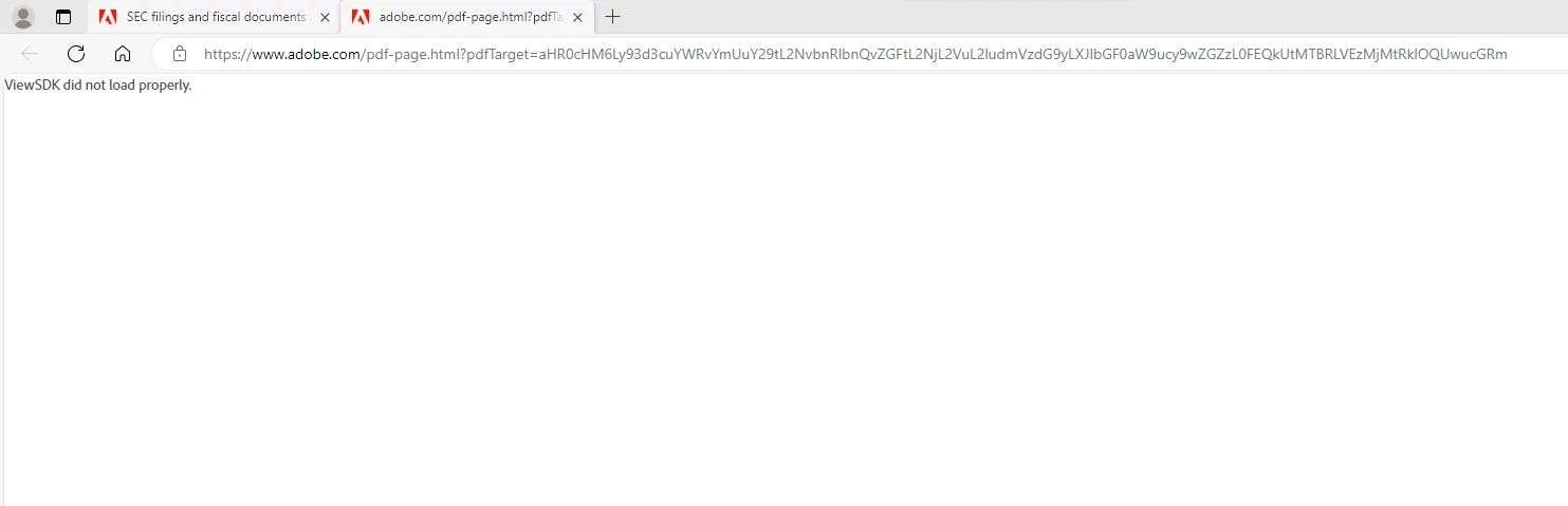 But on every file it opens a blank page with the error message saying "ViewSDK did not load properly". I tried different browsers, but get the same error on all of them. I don't get this error on other sites and pdf files I try to open. And it doesn't work to download the file and then open it, it doesn't download the file, just a shortcut. Is there a setting or something I can change to open or download the pdf files?