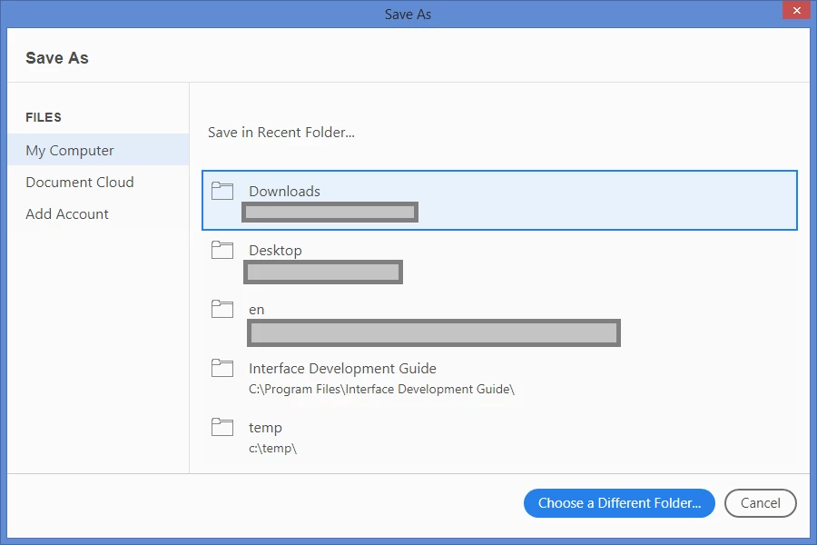 Want Recent Folders on Save - Adobe Reader DC - Win 10