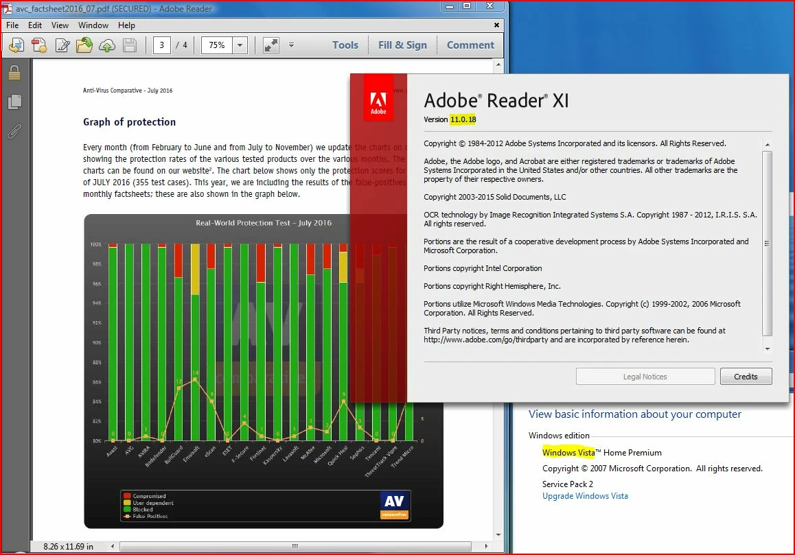 I have been trying to find out which adobe reader I can install for Win Vista 64 bit but have been unsuccessful. I am trying to update it because my Firefox Browser is blocking me from using the current version 10.1.13.16 and won't let me use Adobe Reader ver 10.1.13.16 because they said it's vulnerable and should be updated. if anyone knows which version I can update to I would greatly appreciate it.