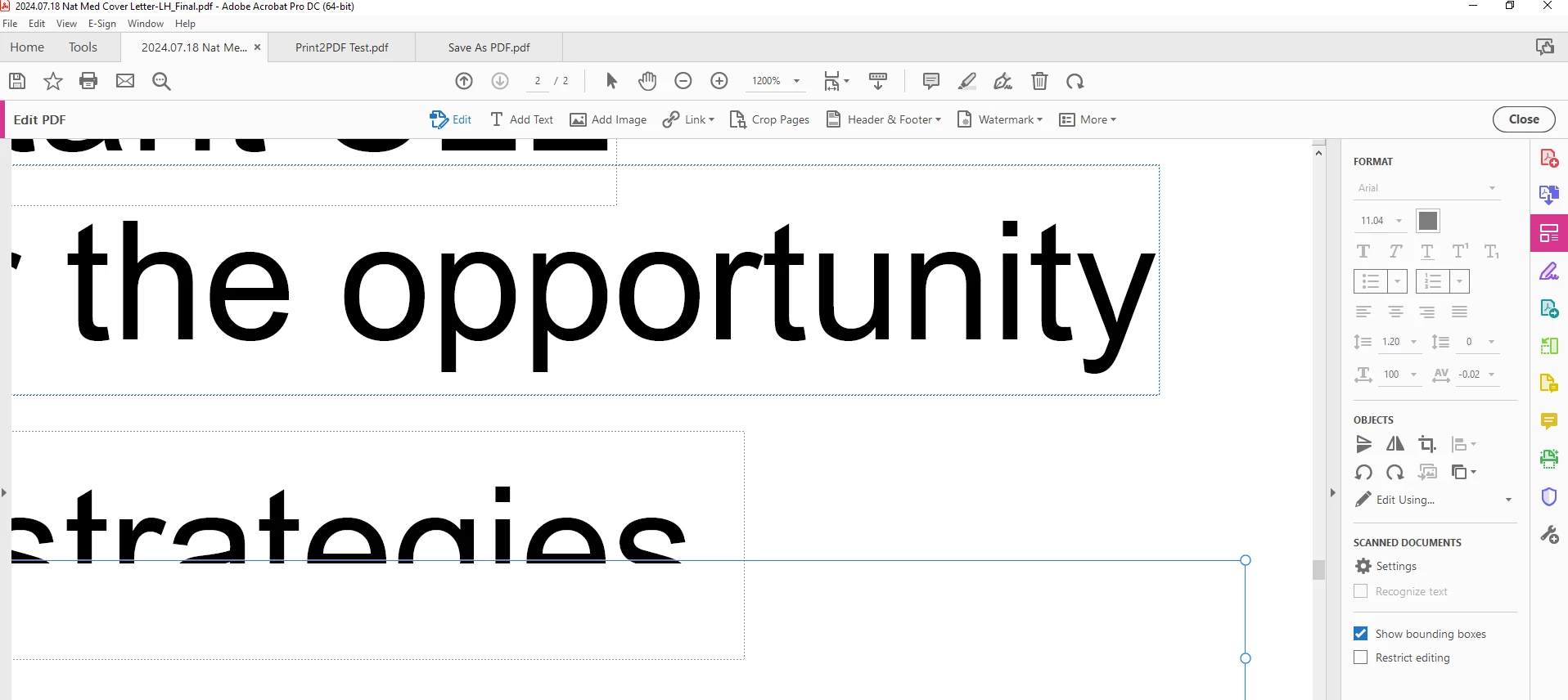 Typically I will have a document and then convert to PDF to finalize and send out (within Word go to File --> Save as Adobe PDF). I then sometimes need to modify the PDF afterwards for appearance, such as shifting the exact position of some lines or getting a signature fitted right. I open the newly made PDF in Acrobat Pro (version info below) and click "Edit."