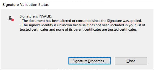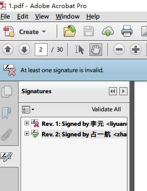 I found a special pdf document that after sign multiple, just only the last signature is valid when opened with adobe reader.