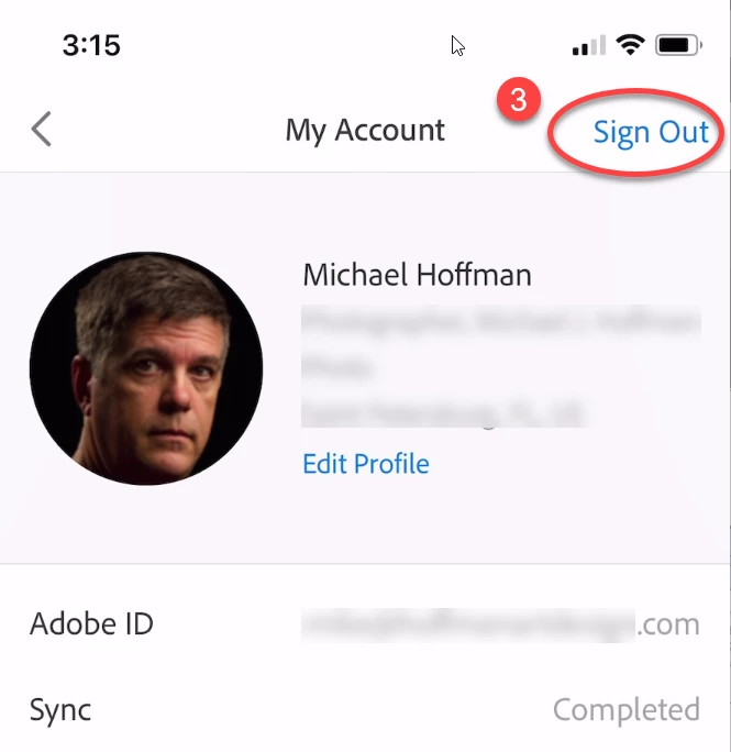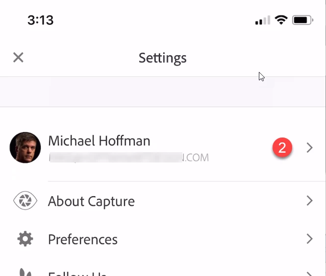 Adobe Capture on Iphone logins in to old account, no way to change to a new login
