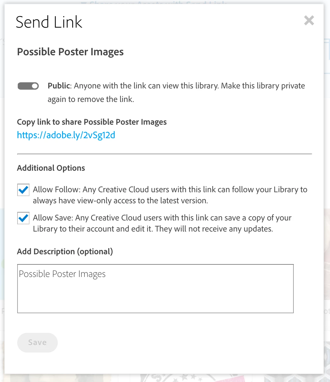 Click on the down arrow on the library you want to share.