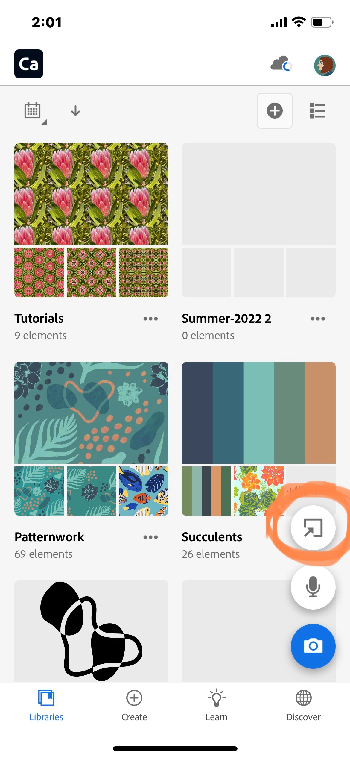 There are two ways to import your own photos in Capture. If you're on the library view screen, tap on the import image button in the bottom right corner. If you are in the camera, tap on the image button in the bottom right corner.