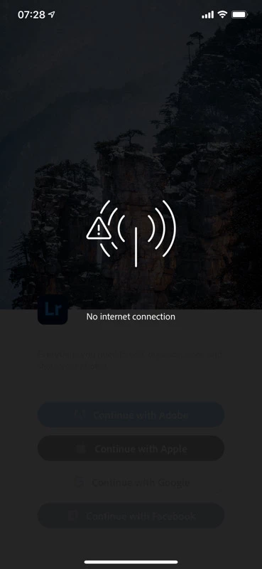 I'm not sure if this is related, but I was also receiving a "No Internet Connection" error whenever I tried to log back in on the Lighthroom App even though I had full WiFi and Celluar. That issues seems to have magical resolved itself.