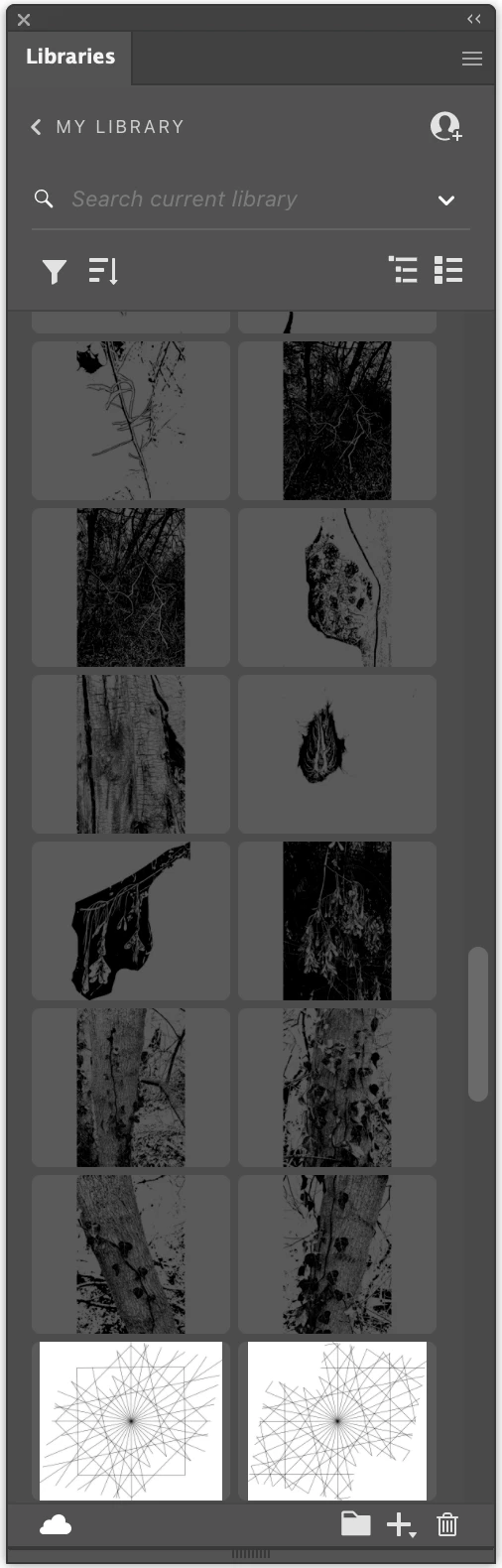 I have been using Capture with my iphone camera to create shapes for use in Illustrator and Photoshop. When the shapes are displayed as thumbnails in the libraries panel in either Illustrator or Photoshop, the part of the thumbnail that represents the background behind the shape is dark grey rather than white. This makes the shapes very hard to see. If I drag a shape onto an artboard, it displayes properly. Do others have this problem? Is there any way to make the backgrounds be white? I'm attaching a screenshot of my libraries panel in Illustrator. The the upper thumbnails are from Capture, the bottom two with white backgrounds were created in Illustrator. I am runnning Illustrator 29.3.1 on mac OS Sequoia 15.3.1