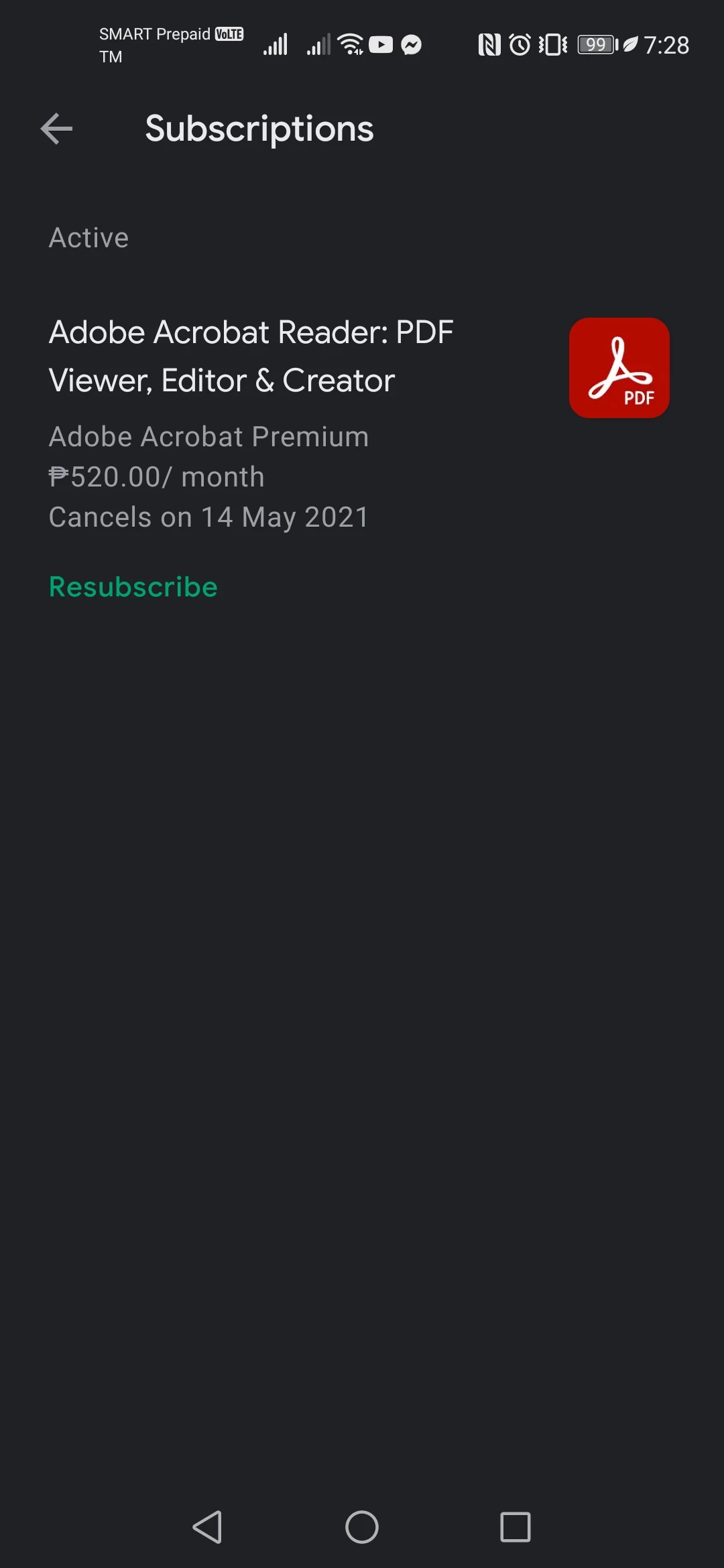 Google manages the Acrobat Reader premium subscription purchased from Google Play Store. You can cancel your subscription using the Google Play Store app on your Android devices.