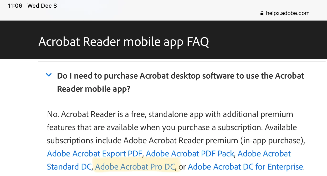 Acrobat Reader Mobile Premium Features not included?