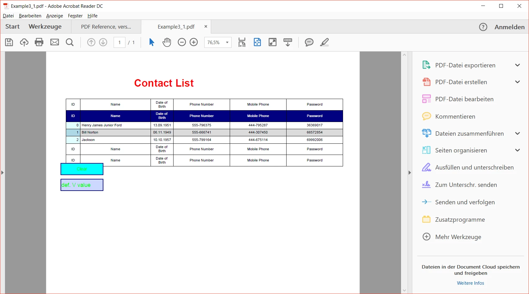 On PC is Acrobat Reader DC is installed, on Android the current actual version from Playstore.