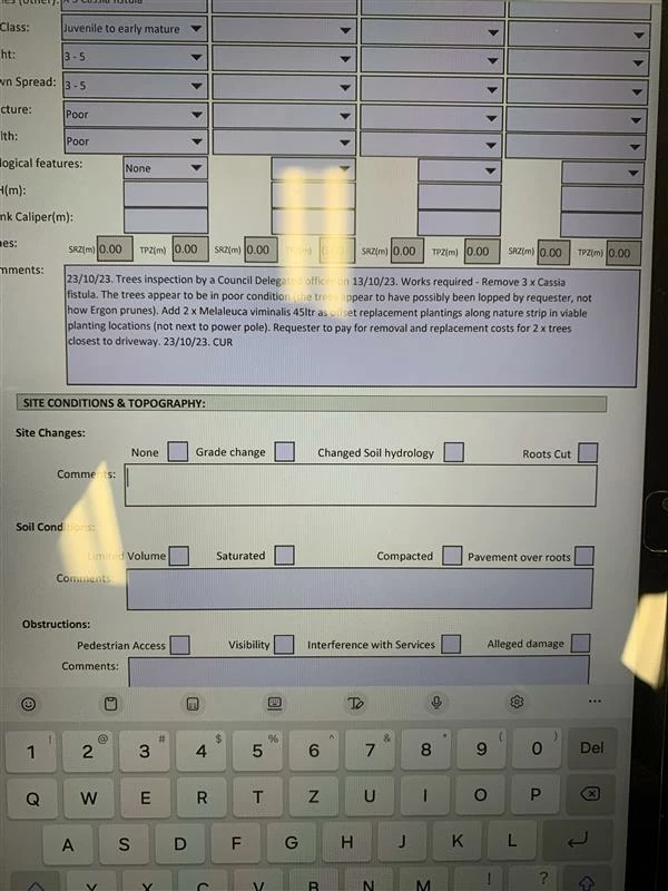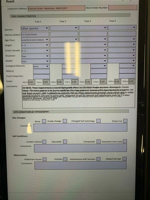 Description: (Site Inspection Form Attached for testing if necessary)