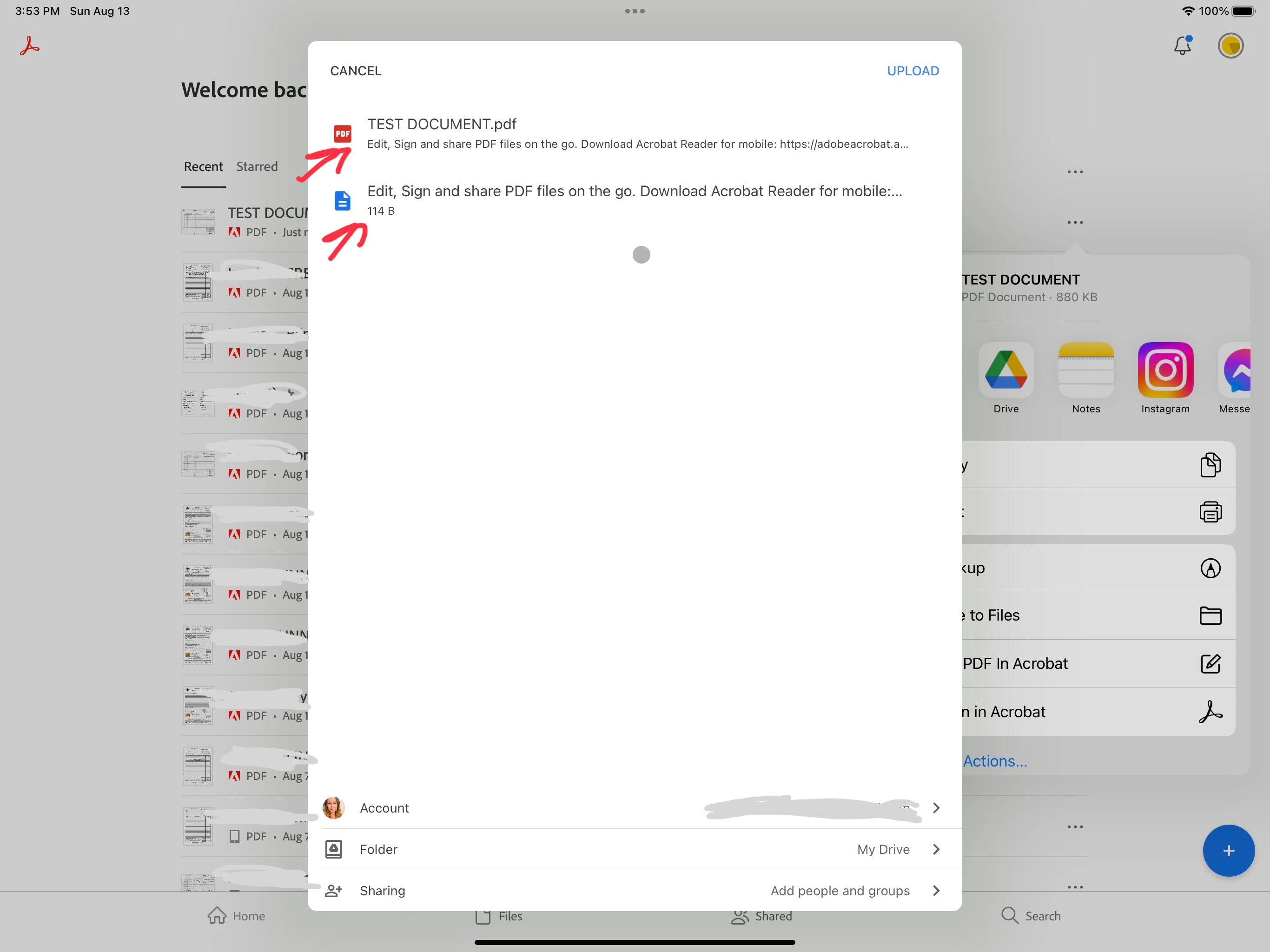 When I send a copy of a pdf to my google drive, it also sends a txt. copy of an Abobe Acrobat ad. This only started happening in the last week. Why is it doing this? I have no way to stop if from sending a copy of “edit, sign and share PDF files on the go...”. It shows up as a separate txt. file, saved to my google drive. I now have hundreds of these little files clogging my drive.