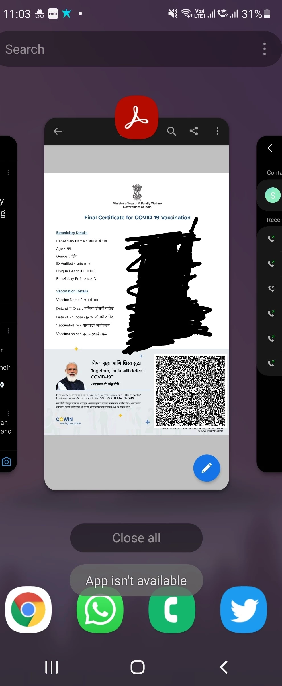 Whenever I try to open Adobe PDF app on my Samsung Galaxy F62 on the multiwindow, I get a message that the app isn't available. I can view the file, but later can't view it again on the multi window.