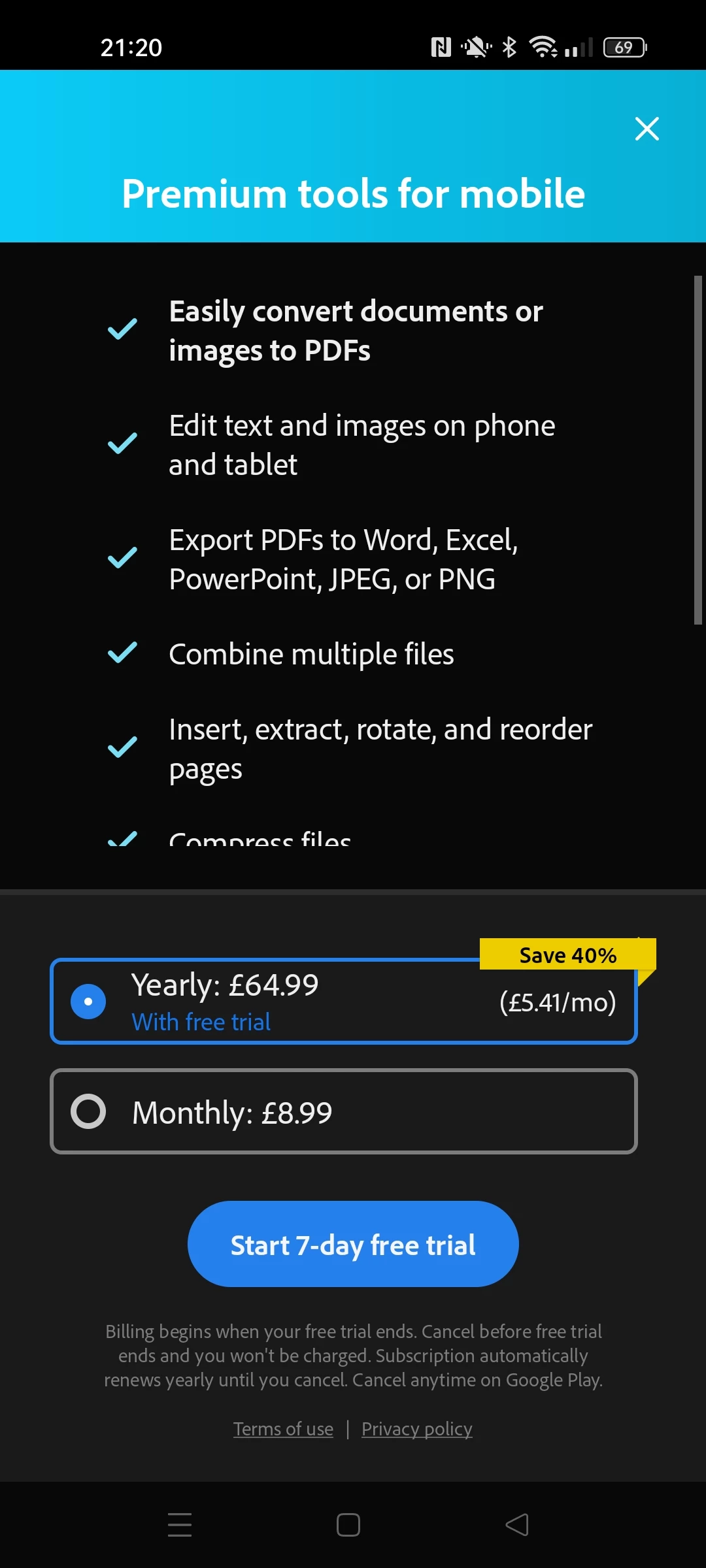 I have Adobe free app and until recently I was able to open and print documents using the free version. Now, when I attempt to open a document, Adobe reader automatically pops premium subscription and when I click "not now" it closes and I am unable to view my document. I have uninstalled and logged out of the app and nothing has changed.