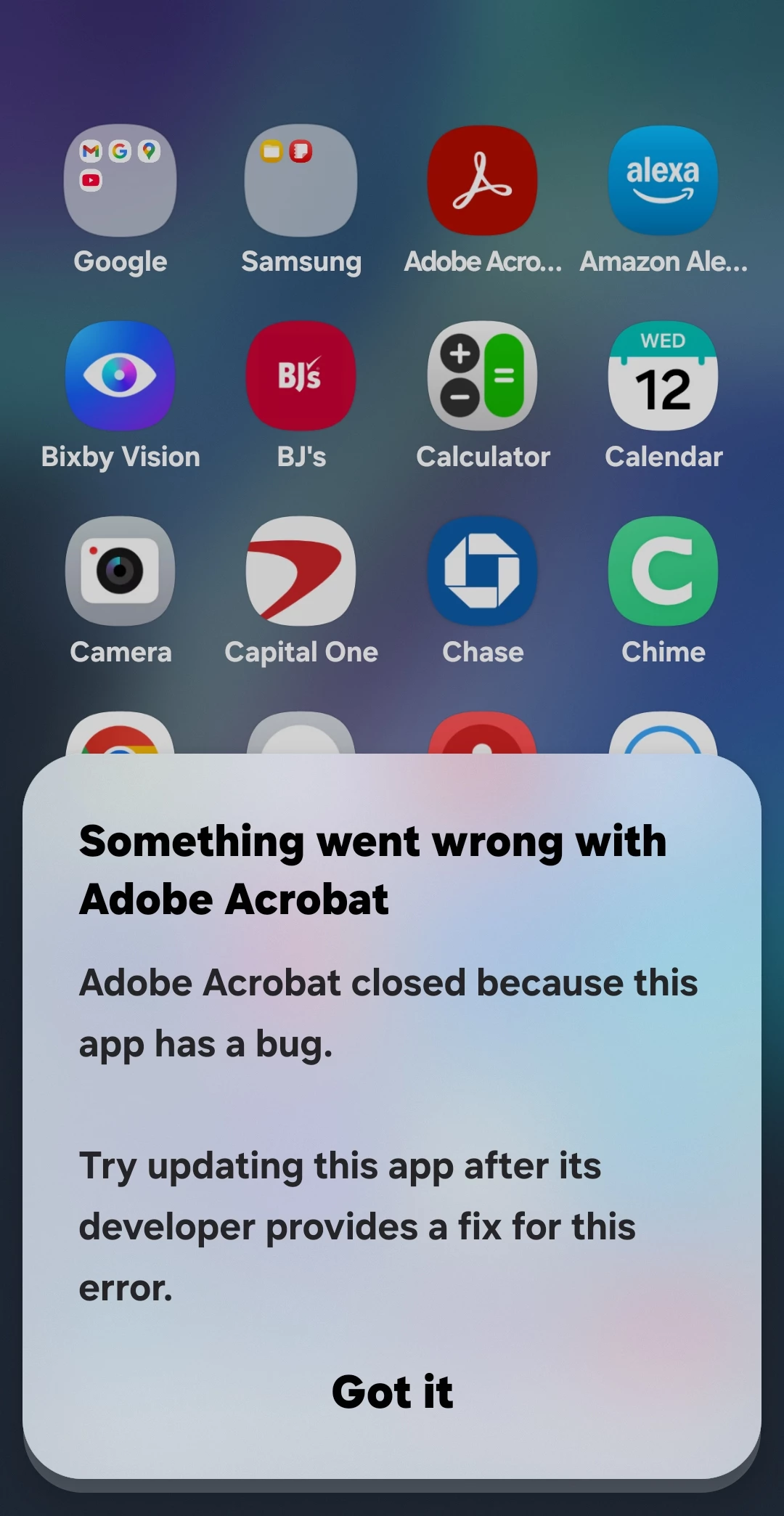 App crashing after update Android S21