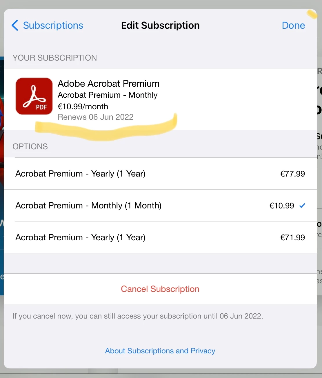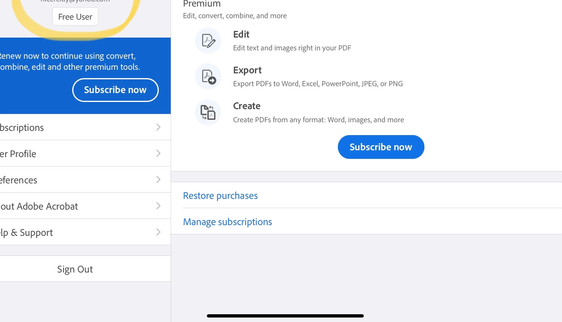 I'm signed in with correct Apple ID, have tried to restore purchases but error occurs, have deleted the app and reinstalled, still cannot Edit or create PDF's it's asking for me to subscribe and when I try to subscribe it's says I'm already subscribed. Any ideas how to fix this?