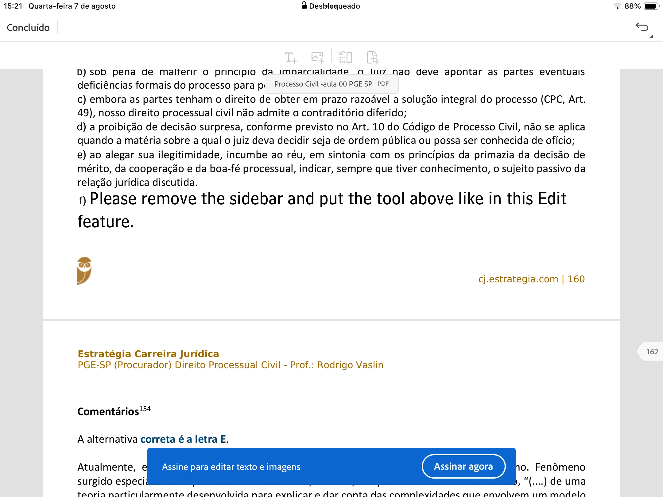 Antes eu poderia ler o pdf e adicionar comentários com uma barra superior de controle. Agora resolveram mudar a barra para as laterais, diminuindo o tamanho do texto e dificultando a leitura e marcação. Péssimo.