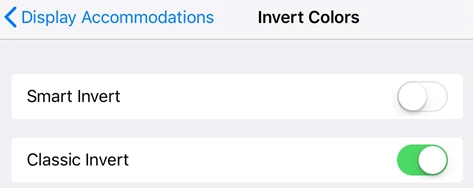 - Smart Invert inverts most colors but leaves images, media, and some apps in their original state.