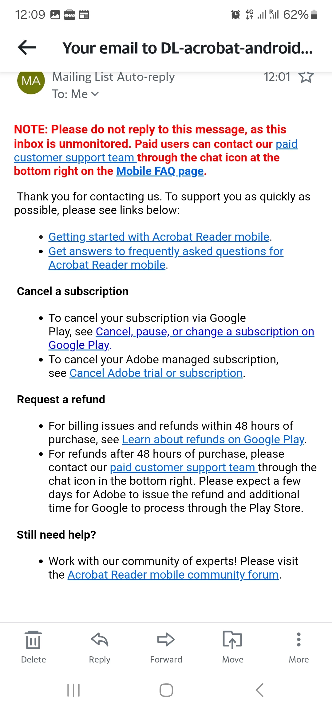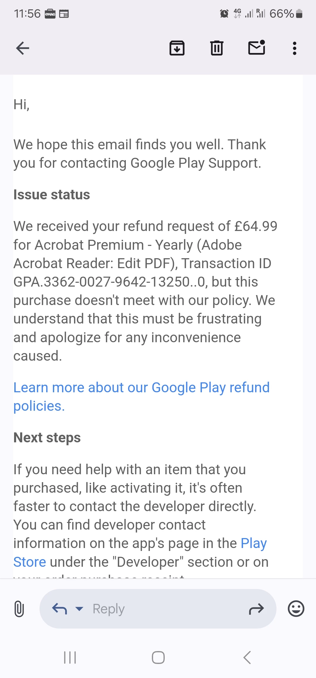 It seems nobody actually wants to refund you for an auto subscription that i thought that i cancelled and i still got charged for it. If i talk with google they send me to you guys and you guys send me to them. In the end everyone is avoiding to solve the issue to get an refund for an product that i never used even if on your website shows you will be refunded within 14 days.