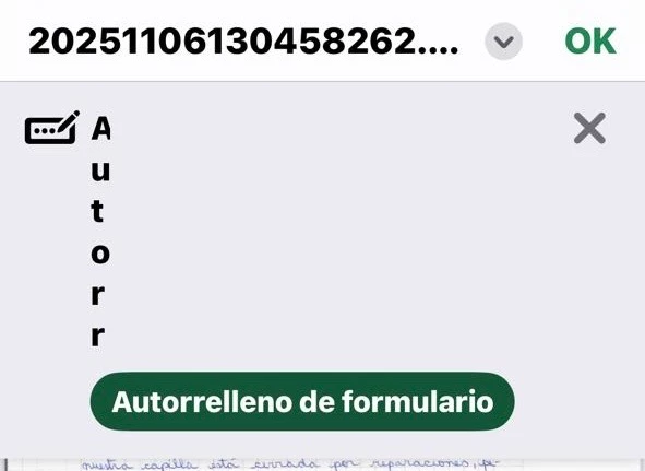 Quisiera favor se pueda desmarcar la alternativa de autorrelleno en IOS, ya que cada vez que se abre un documento pdf editable o rellenable, aparece el Menú de autorrelleno, y es muy molesto para mi Jefatura, quienes no editan o modifican estos documentos.