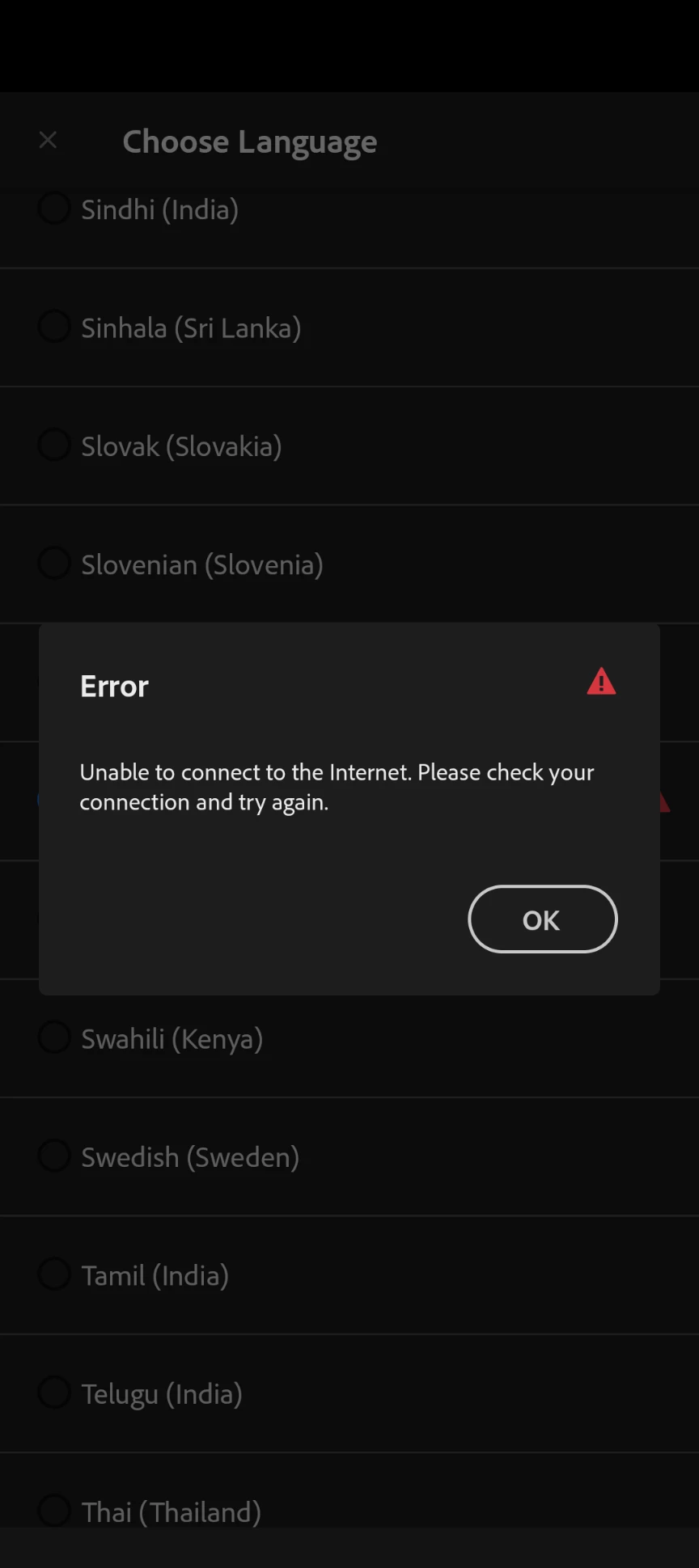 Mostly the main Google apps will appear listed here and maybe a few third-party apps. Yet, the Acrobat Mobile app doesn't appear listed here, indicating that the Acrobat app doesn't support that particular language selection.