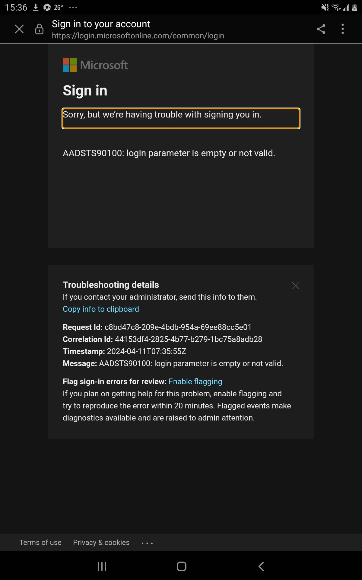Can't link OneDrive to Adobe Acrobat mobile on Android