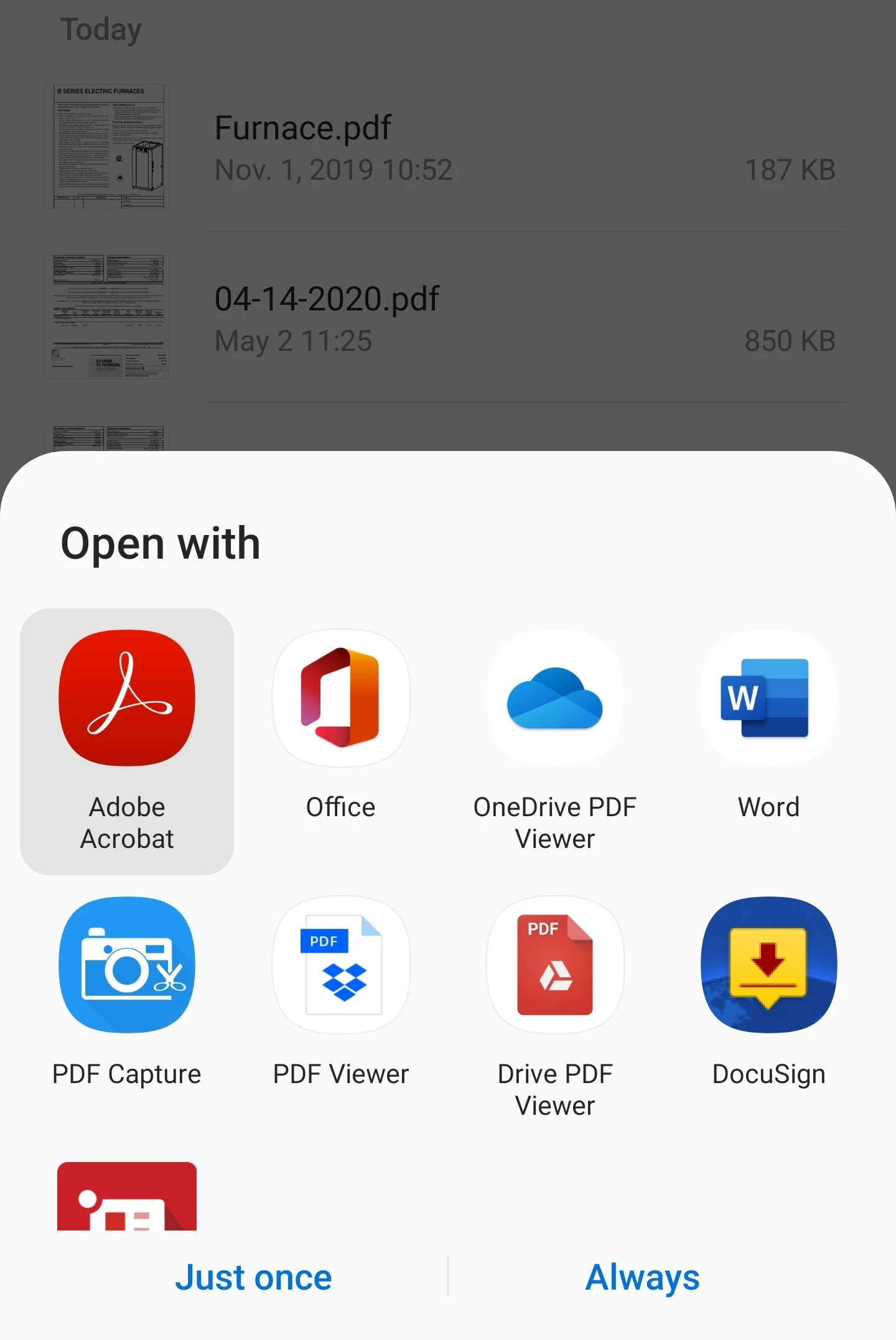 Can't set Adobe reader as default reader for Samsung Galaxy S10 (Android)