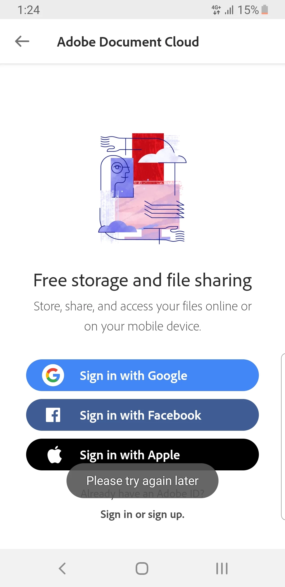 We did try to replicate the behavior on our end, however, it is working fine. Make sure your application is updated. Reboot your device and then try. Try to reinstall the app once. For Android Adobe Reader Mobile version: 21.3.0.17414