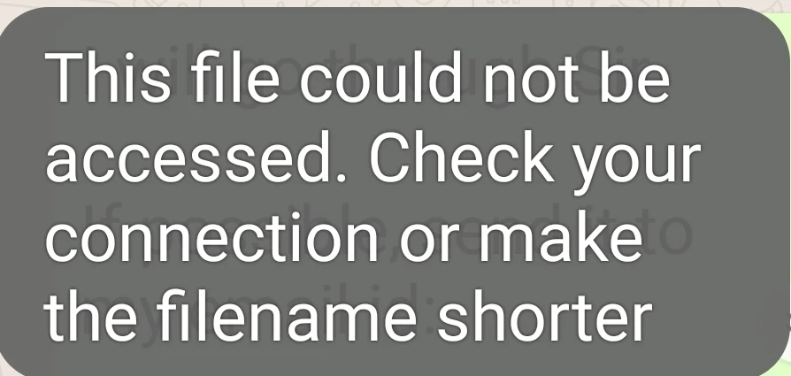'The file could not be accessed.  Check your connection or make file name shorter.'