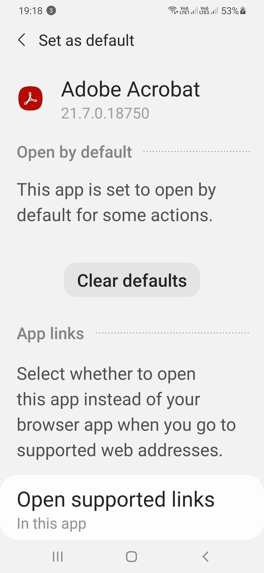 Cannot select Adobe acrobat as default in my android mobile