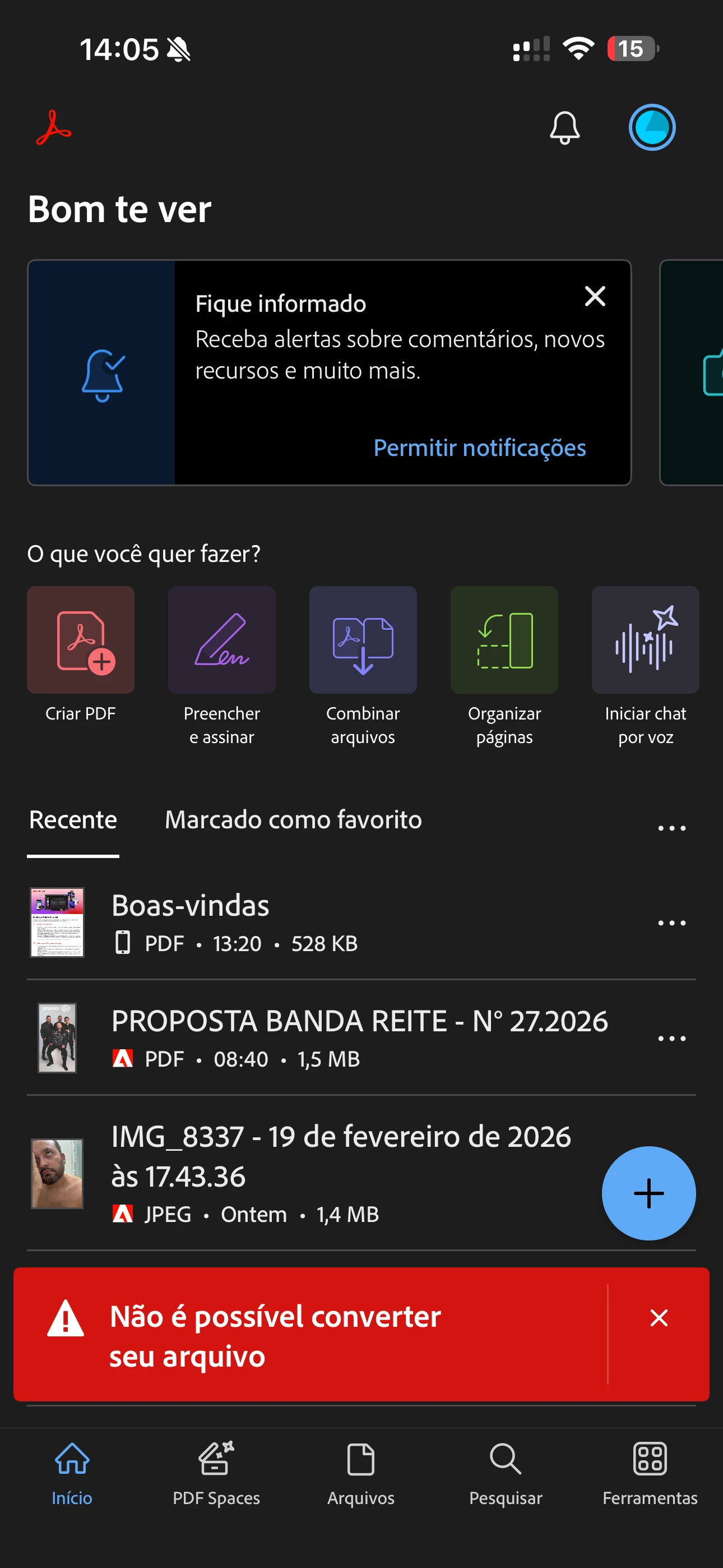 Sempre aparece a mensagem: “Não é possível converter o arquivo”. O que está acontecendo? Preciso concluir minhas edições e juntar os arquivos.