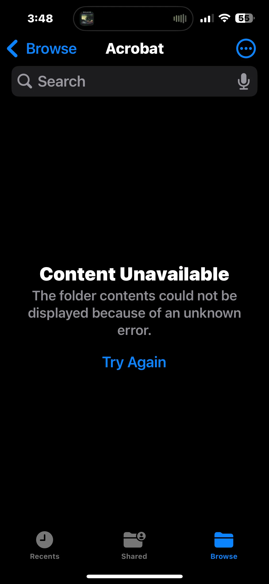 When attempting to access the Adobe local folder on iPhone 14 Pro Max IOS version 18.1, Adobe Acrobat Reader Version 24.11.00 I receive the following error message: Contents Unavailable - The folder contents could not be displayed because of an unknown error. Is there anyone that can tell me why I am getting this error message?