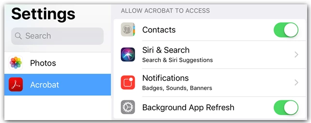 Alternatively, navigate to device settings within Acrobat by tapping