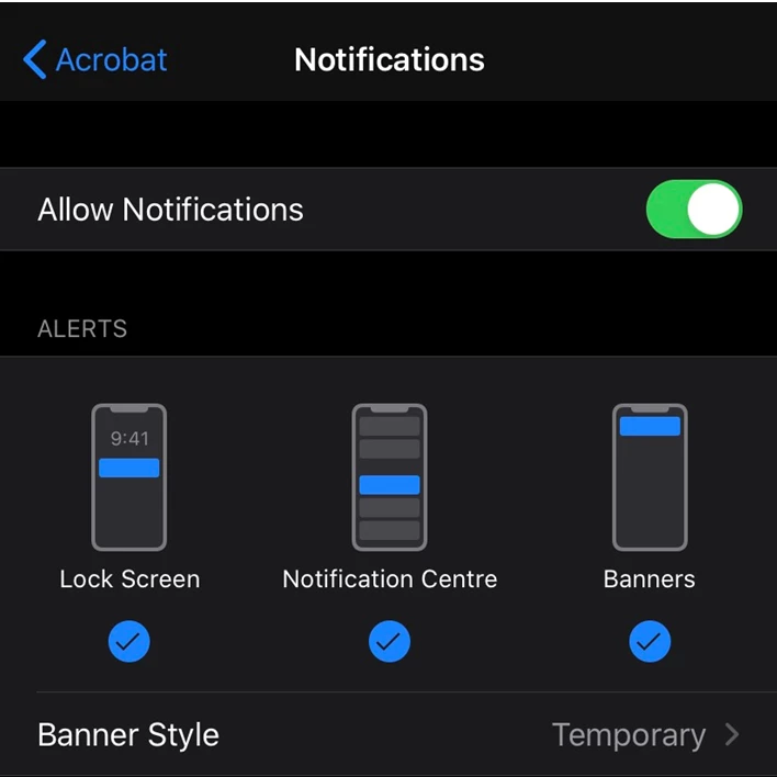 Adobe Reader mobile app leverages your device’s features, and its default settings make it easier and faster to work with your documents. You can customize these notifications and settings manually and can be enabled/disabled easily.