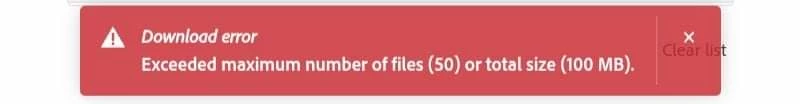 I tried logging in to the Document Cloud (using Chrome) and tried downloading some files and it says, "Download Error. Exceeded maximum number of files (50) or total size of 100 MB" I tried downloading other files, it's just the same. I can't download it.