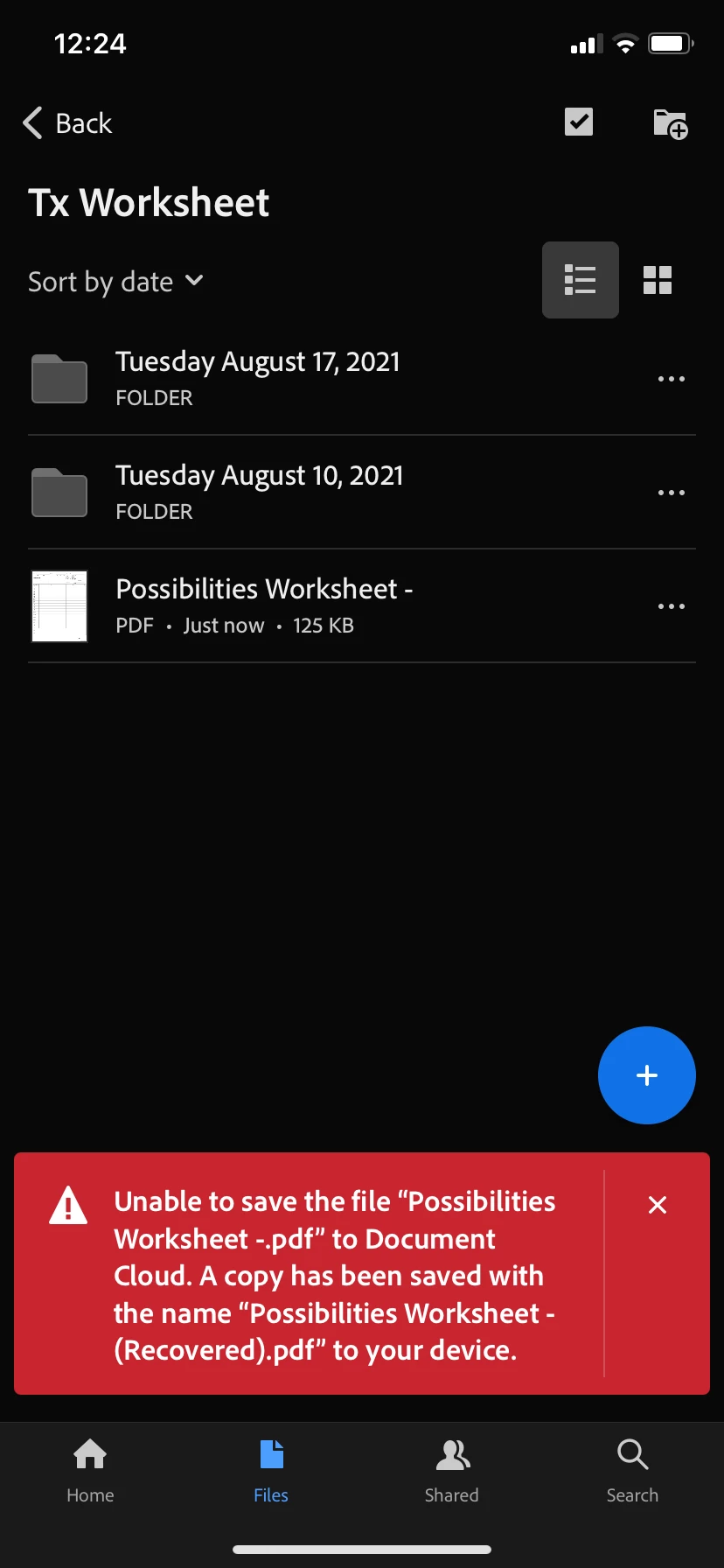I've been using the Adobe Acrobat on my phone and iPad and using the document cloud to acess files from either device. When I close the document I'm editing in the cloud it says that it cannot save to the cloud and a recovered version has been saved to my device. This has happened with multiple files. I have tried signing out of the app, restarting my device and signing back in- still doesn't work. I have also tried deleting the app, powering off my device, reinstalling the app and signing back in and it still doesn't save on the document cloud.