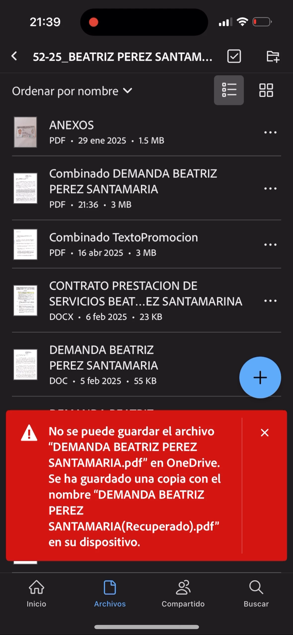 Estoy presentando este problema a la hora de querer fusionar archivos o páginas en archivo contenido En OneDrive.