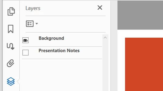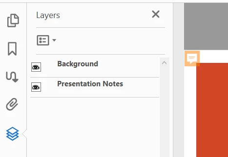 When you convert PowerPoint Notes to Acrobat Comments, Acrobat automatically creates a Layer for the Notes and puts the Layers pane in the left-hand Navigation Pane. (Or View > Show/Hide > Navigation Panes.)
