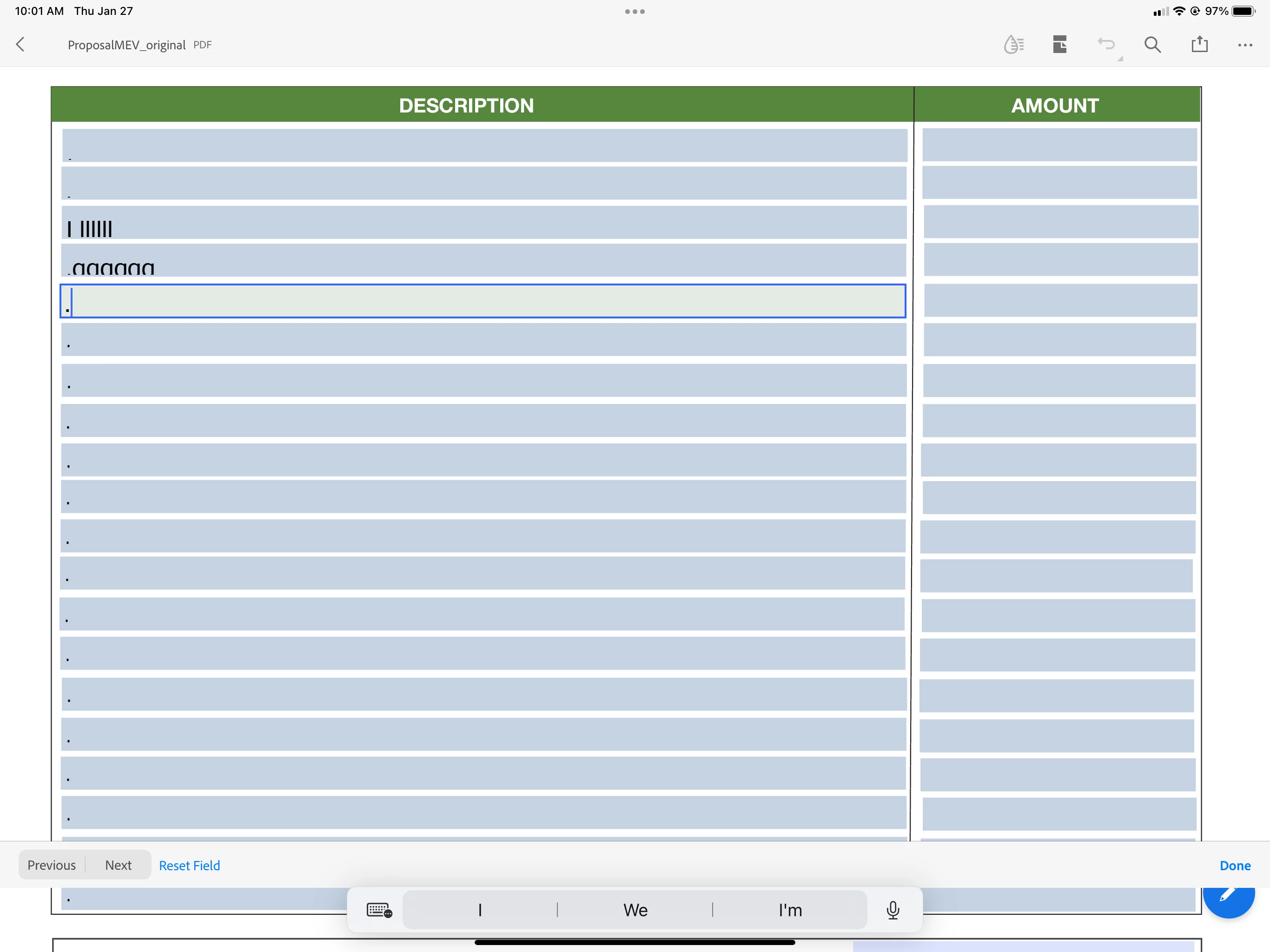 When using the fill and sign feature on ipad, the specific field that you have to fill sometimes appears too small for the size of text . This makes the text be cut off and not visible at the bottom of the verbiage for each fill line .