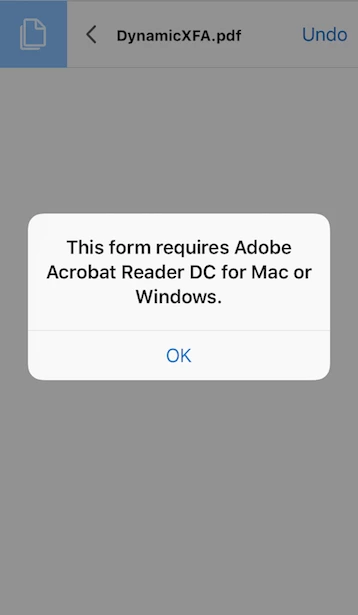 I have a fillable, dynamic form created by LiveCycleDesigner ES4 and now transferred as an email attachment to an iPad. The form looks fine on the iPad using Acrobat Reader app, but the fields can not be filled in, they do not respond to touch. Is it possible to have dynamic, fillable, forms residing on an iPad?