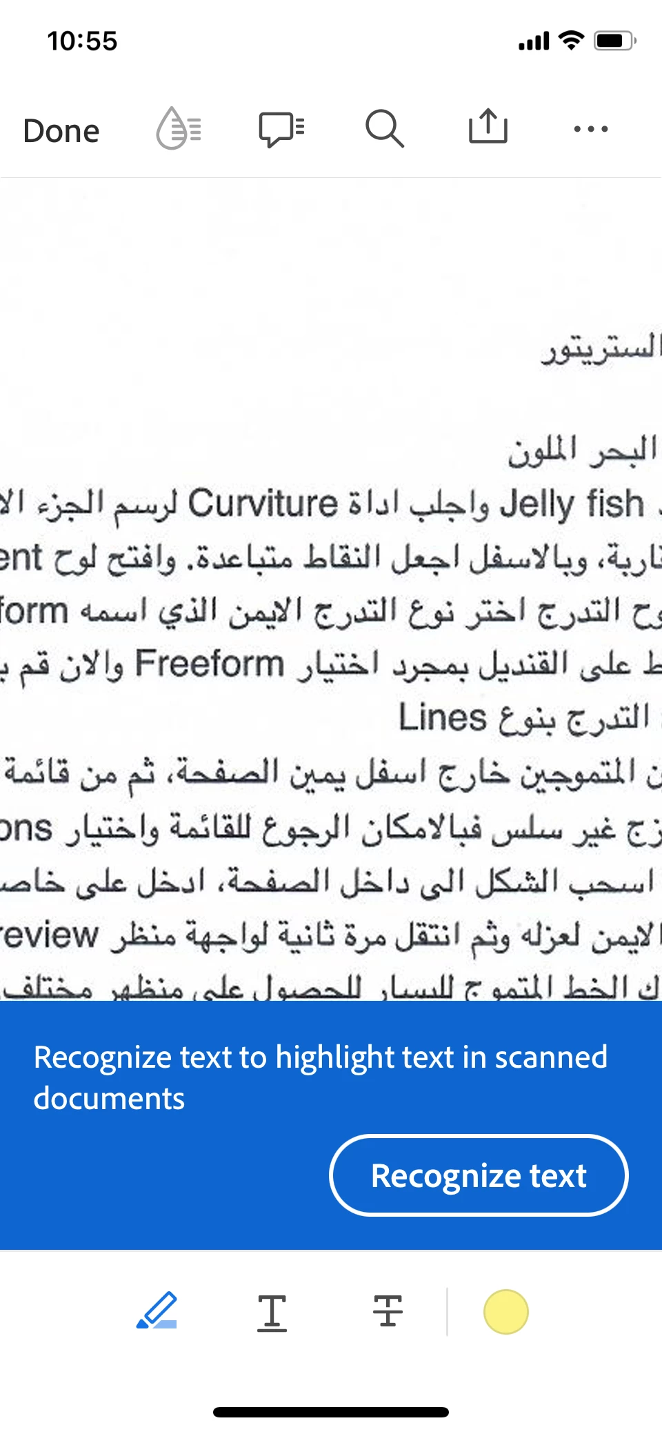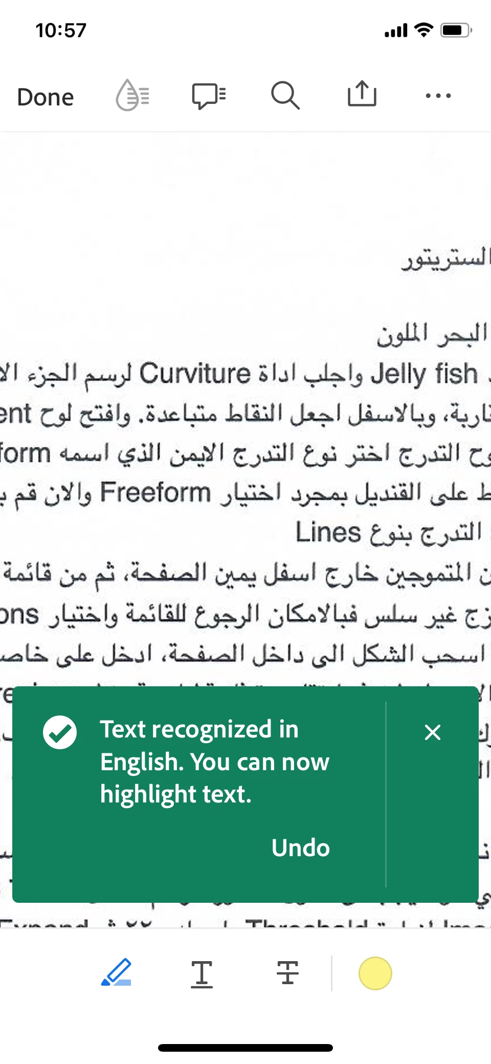 I can't freehand highlight my scanned Arabic language papers, the highlight tool works only with English language but not Arabic.