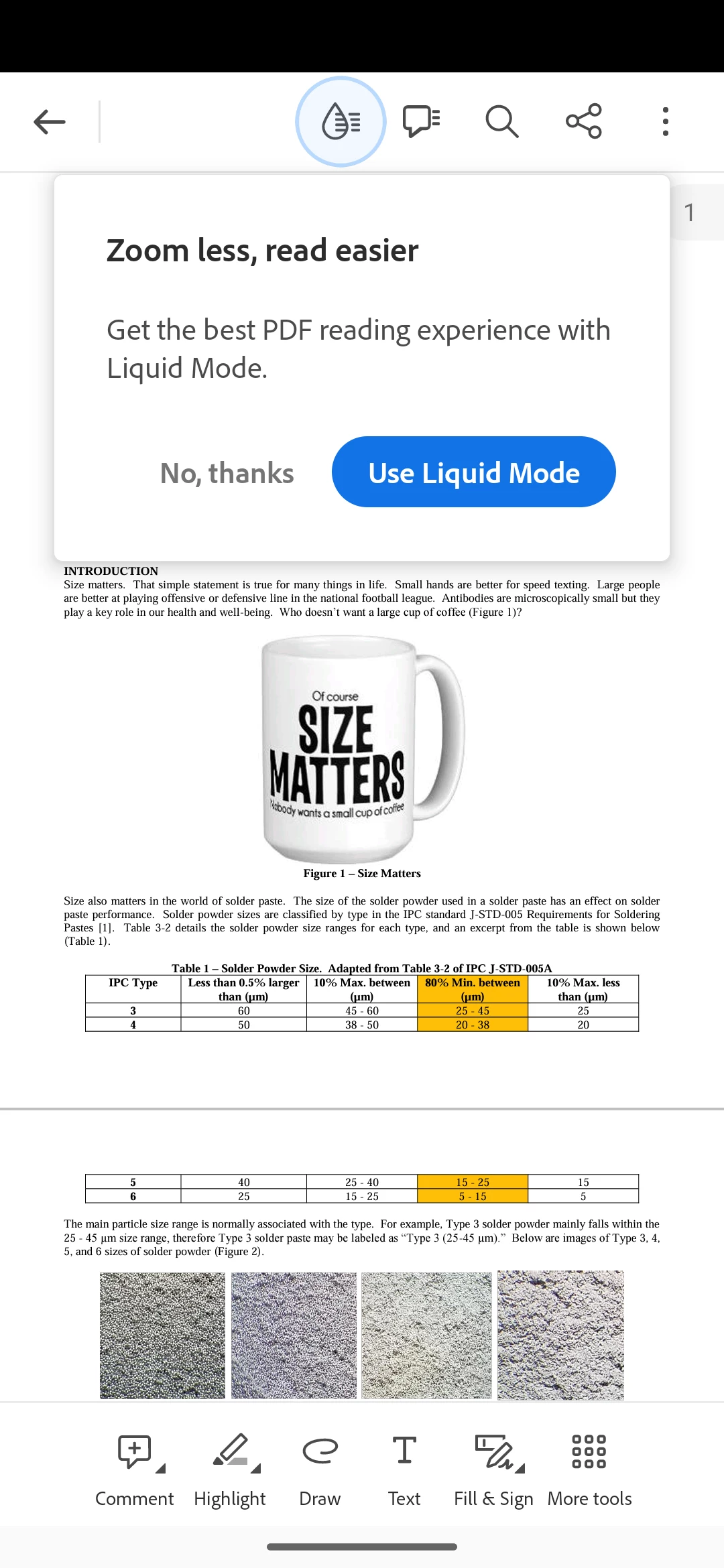 I need to disable the popups about "liquid mode" in Acrobat Pro for Android. They come up on almost every PDF and get in the way of the content.