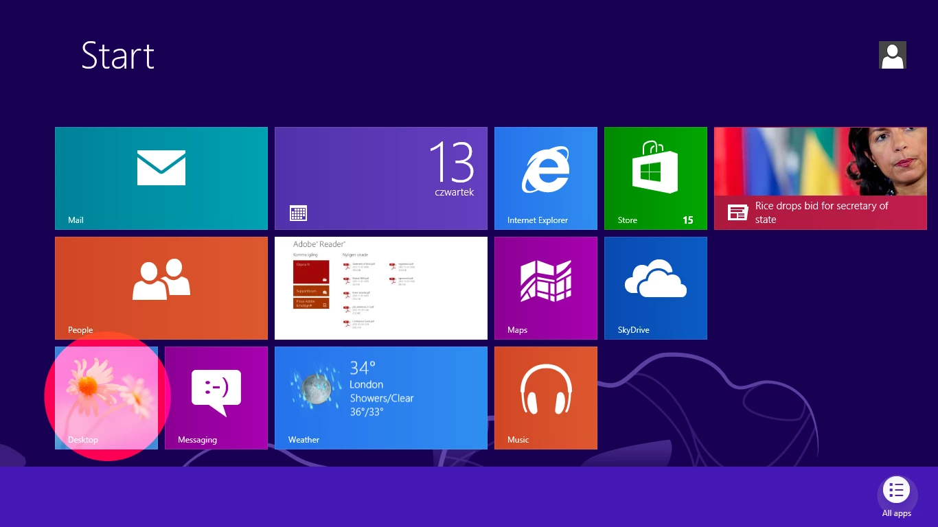 1. Tap/click on "Desktop" to enter Classic mode.