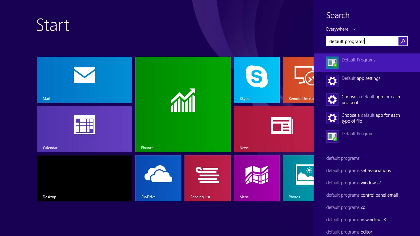 2. Enter "default programs".